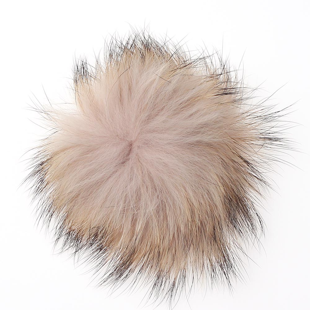 Натуральный меховой помпон с кнопкой 8 см бежевый