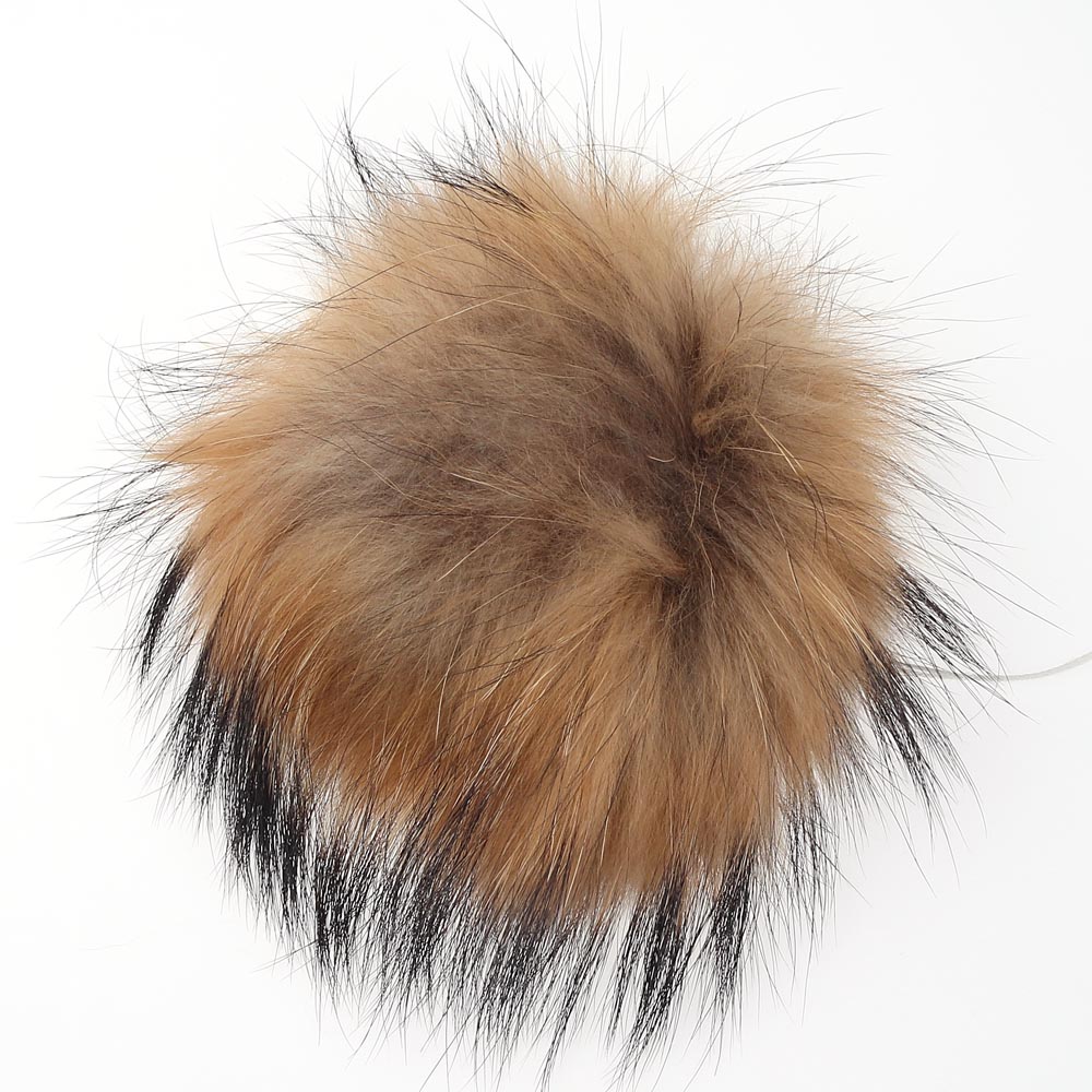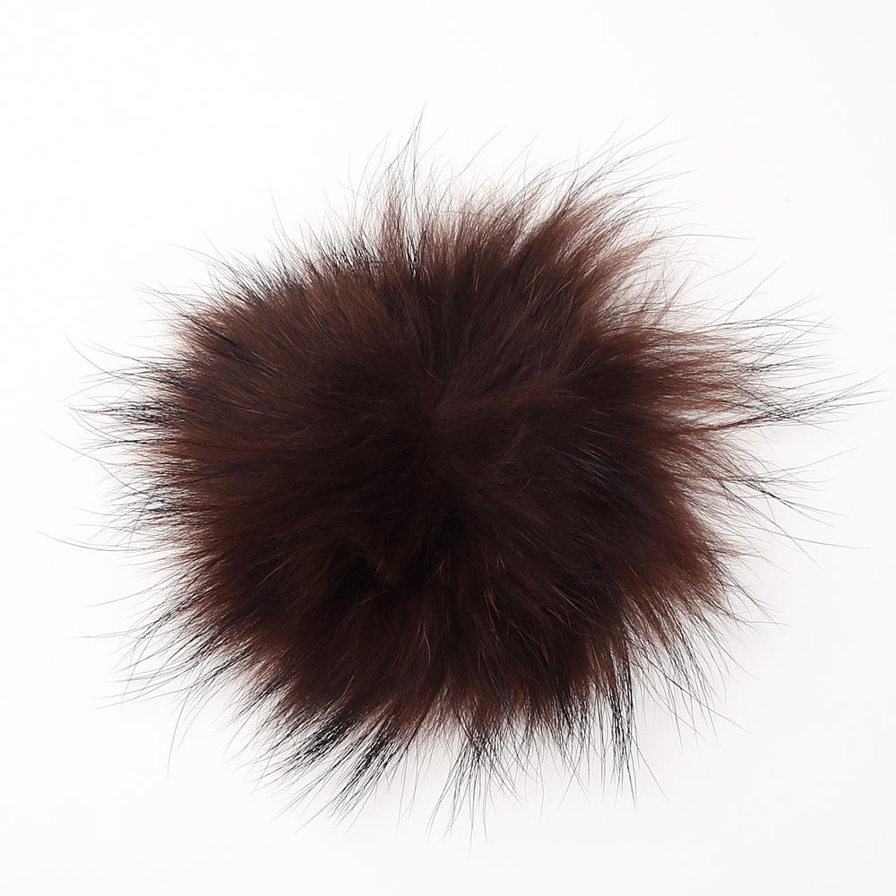 Натуральный меховой помпон с кнопкой 8 см коричневый