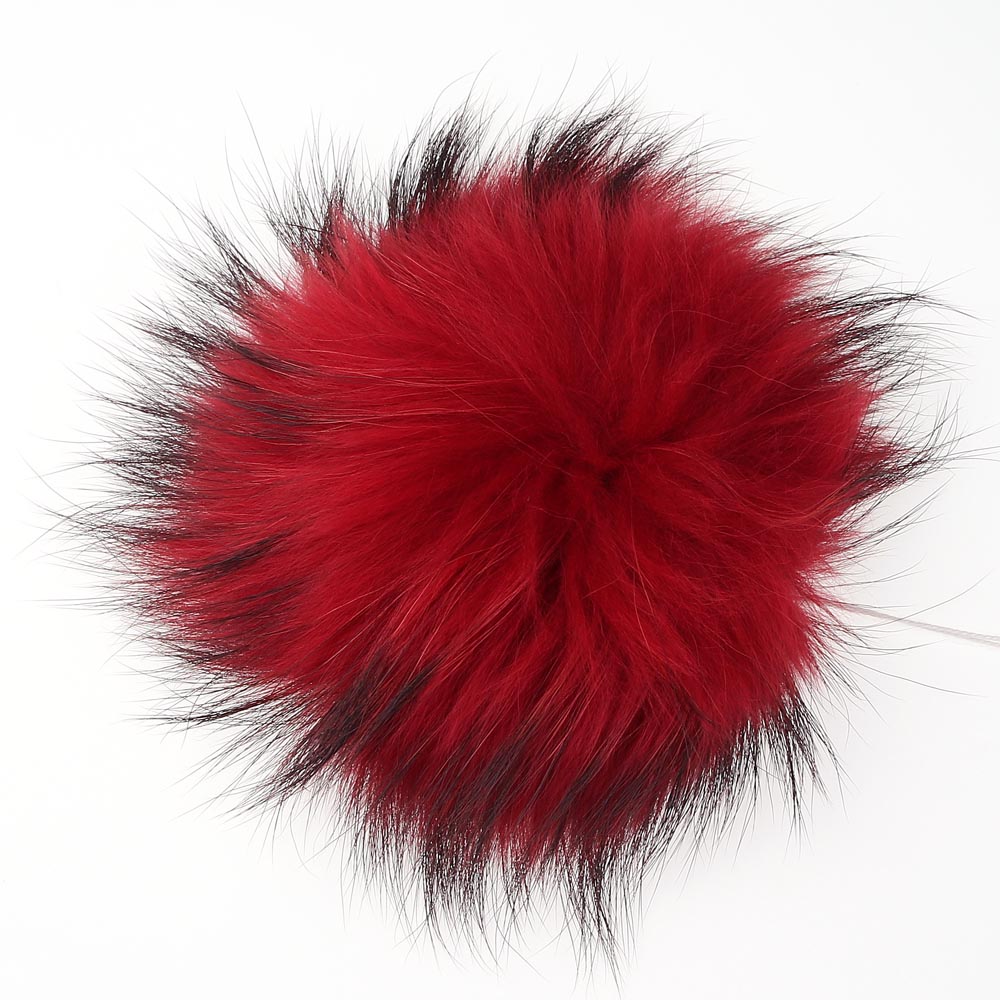 Натуральный меховой помпон с ниточкой 12 см бордовый