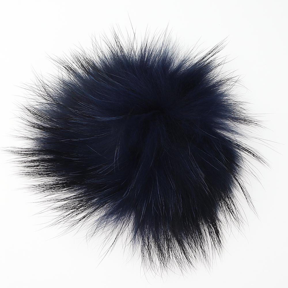 Натуральный меховой помпон с кнопкой 10 см тёмно - синий