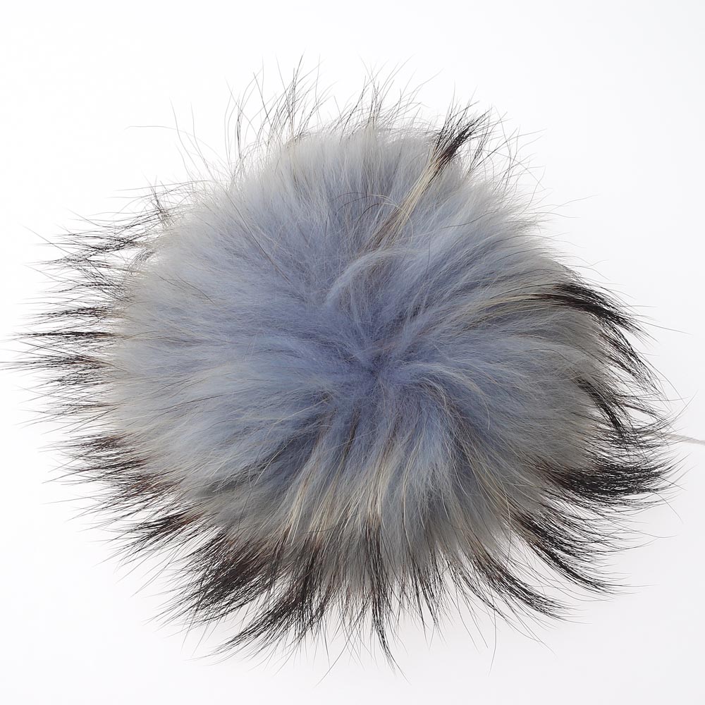 Натуральный меховой помпон с кнопкой 8 см джинсовый