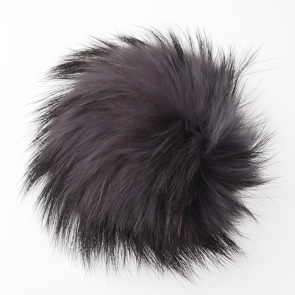 Натуральный меховой помпон с кнопкой 8 см светло-серый
