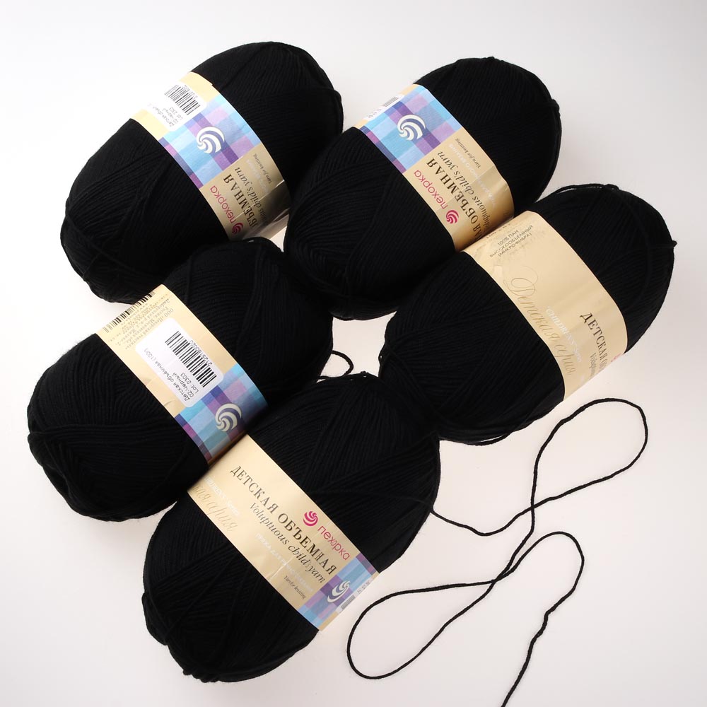 Пряжа "Детская обьемная" 100% микрофибра 100 гр 400 м 5 шт. черная 02