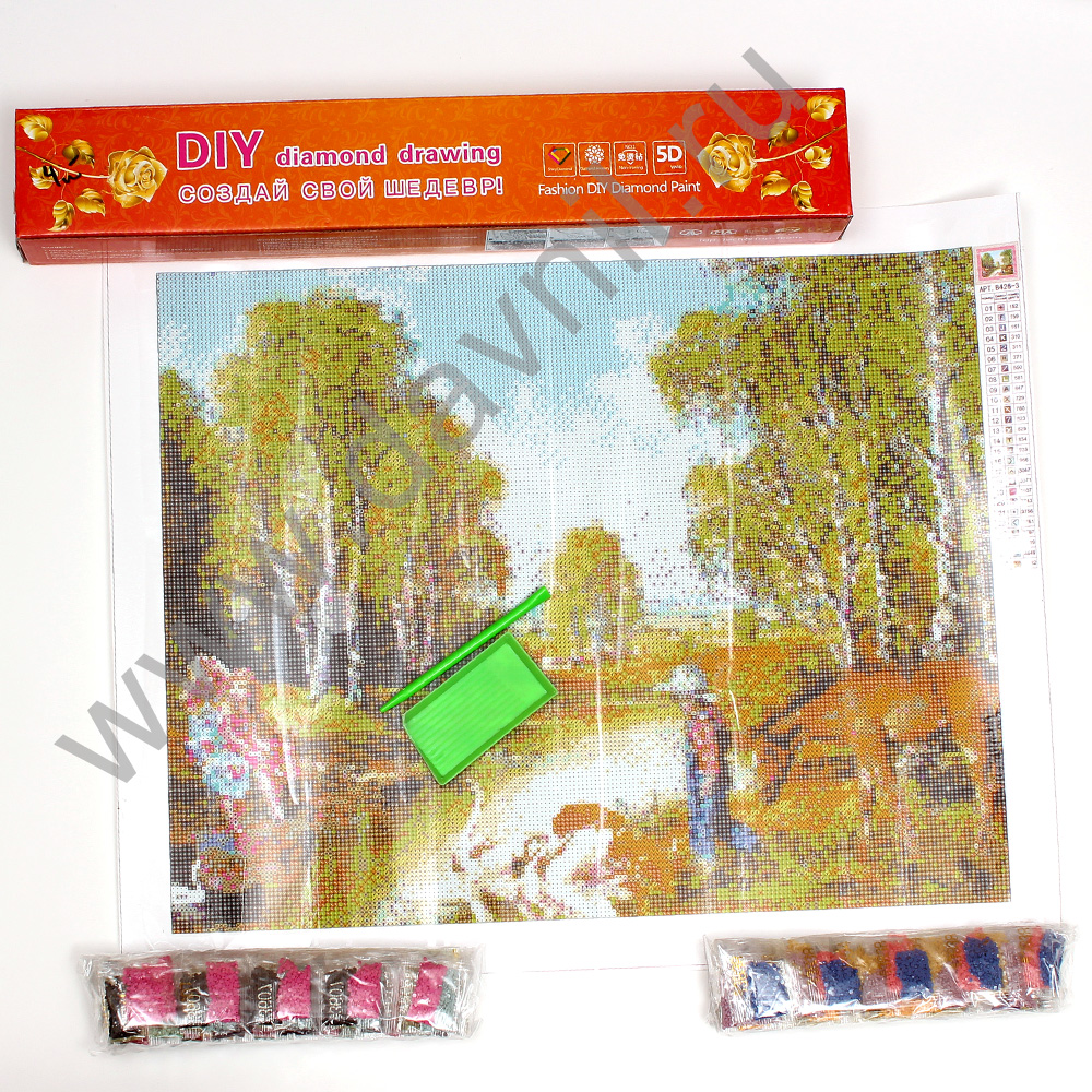 Алмазная мозаика 46*56 см 1 шт. "зелёные берёзки"