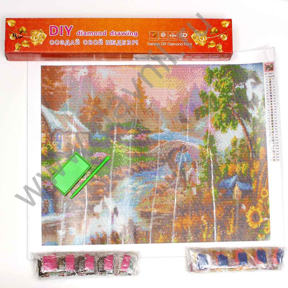 Алмазная мозаика 46*56 см 1 шт. "лесной домик у ручья"
