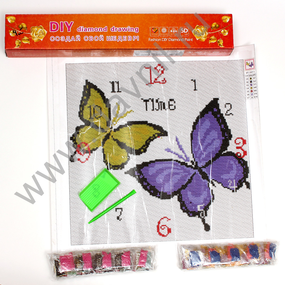 Алмазная мозаика 46*56 см 1 шт."часы (бабочки)"