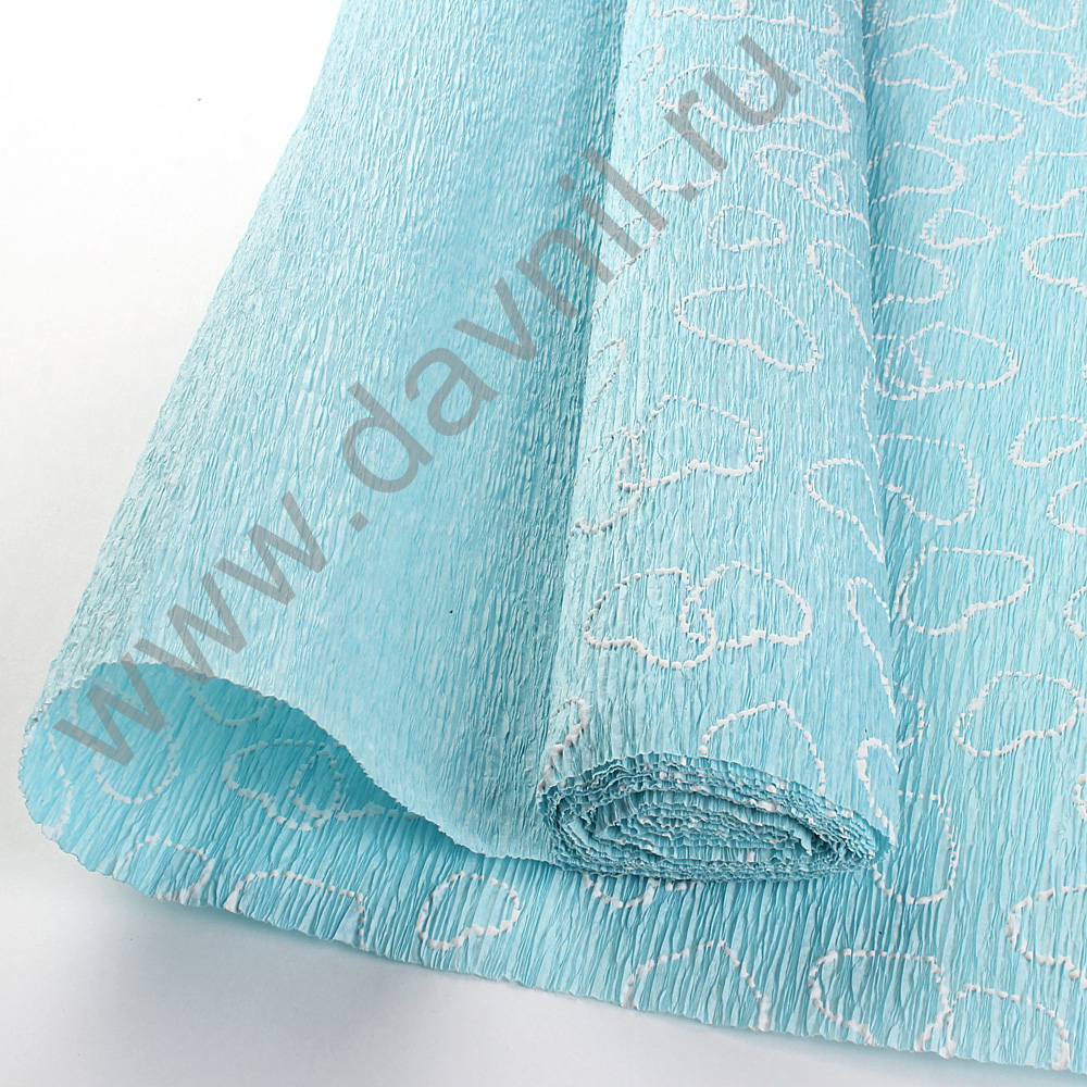Бумага гофрированная 50 см 2,5 м с белыми сердечками голубая 6