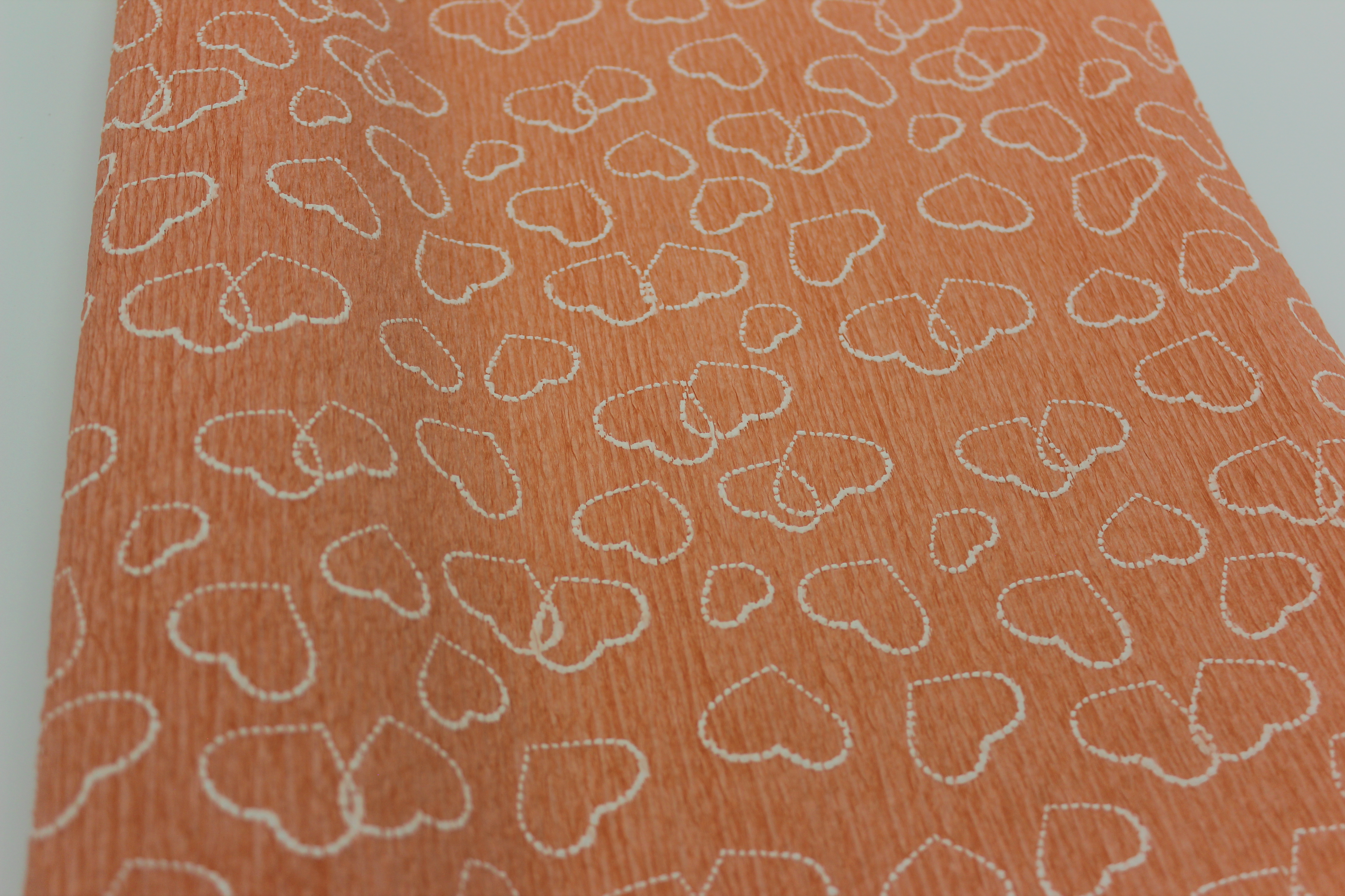 Бумага гофрированная 50 см 2,5 м с белыми сердечками персиковая 4