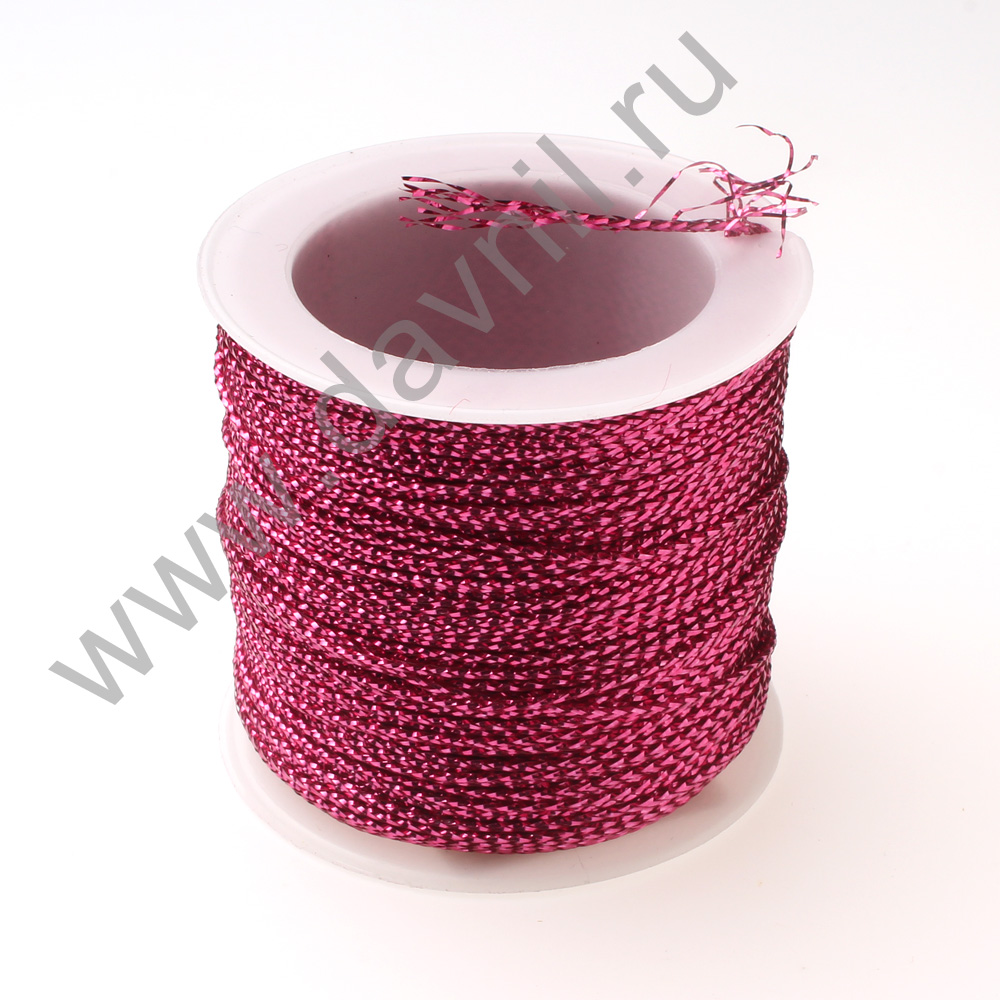 Нить-люрекс витая 1 мм 50 м для творчества 1 шт розовая