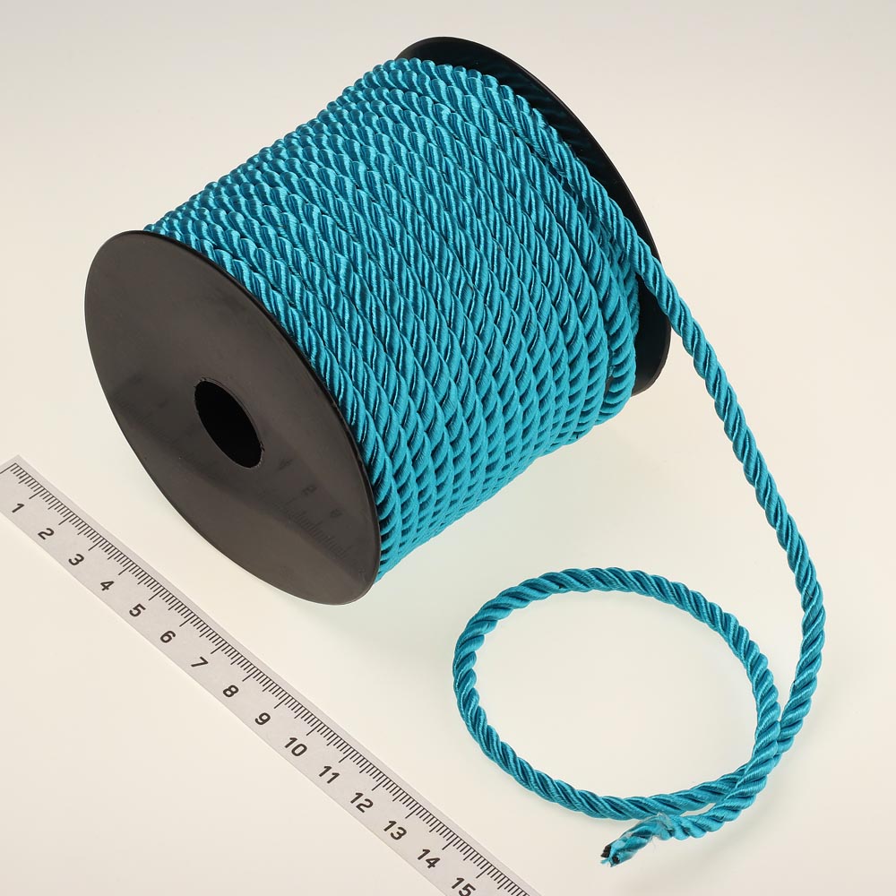 Шнур витой однотонный 5 мм 25 м бирюзовый 029.