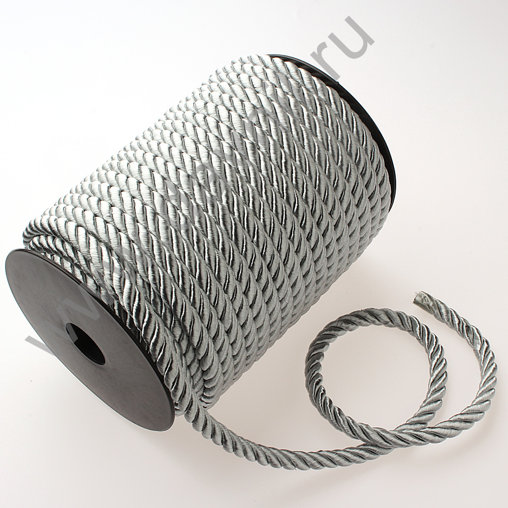 Шнур витой однотонный 8 мм 25 м серебро 011.