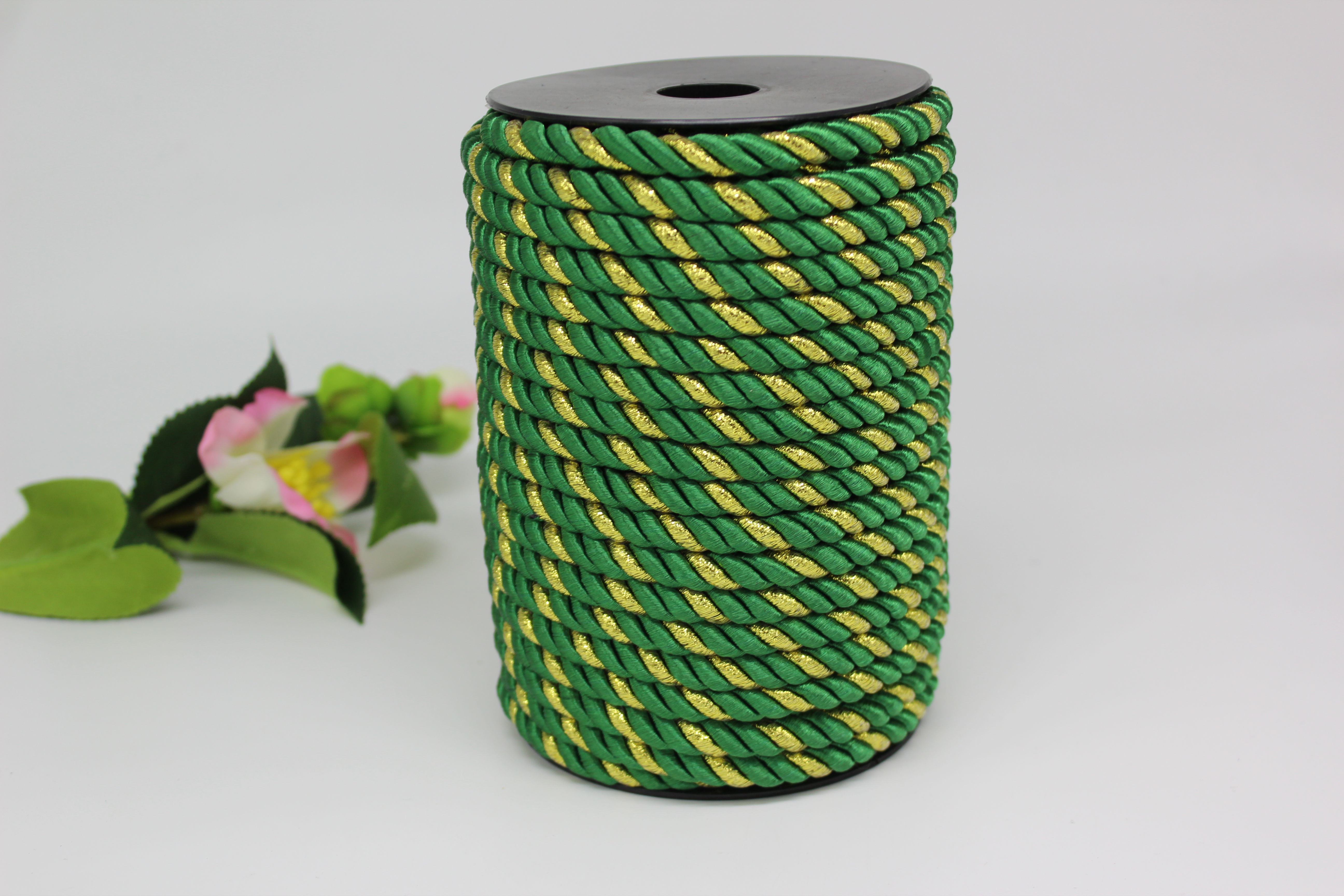 Шнур витой с золотым люрексом 8 мм 25 м зелёный 35