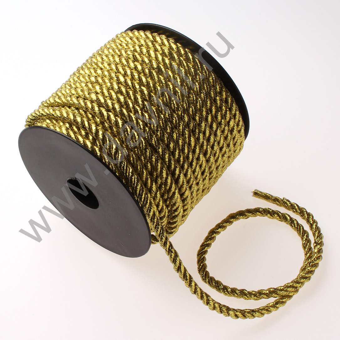 Шнур витой однотонный с люрексом 5 мм 25 м золото MS13