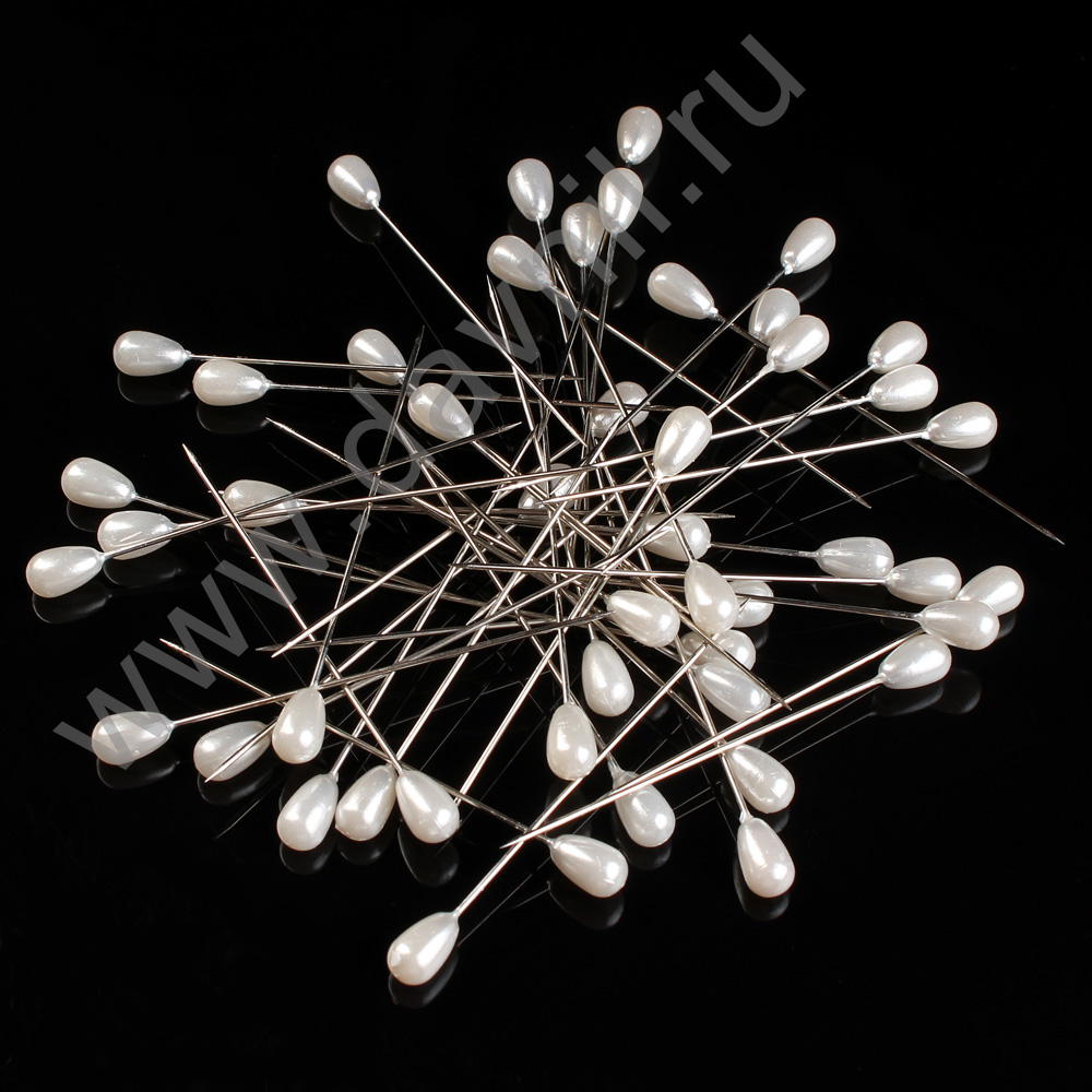Набор булавок портновских 45 мм с овальными головками 40 шт белые