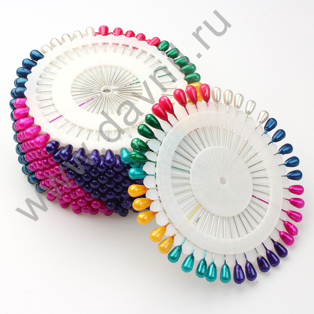Набор булавок портновских с овальной бусинкой 40 мм 480 шт цветные