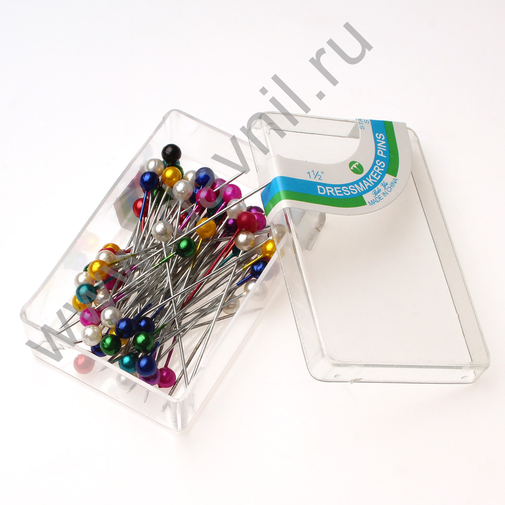Набор булавок портновских 38 мм с круглыми головками 2000 шт цветные