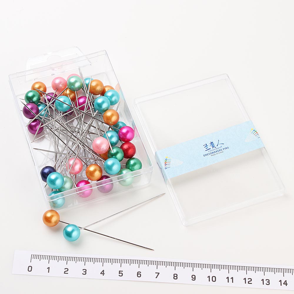 Набор булавок портновских 55 мм с круглыми головками 40 шт цветные