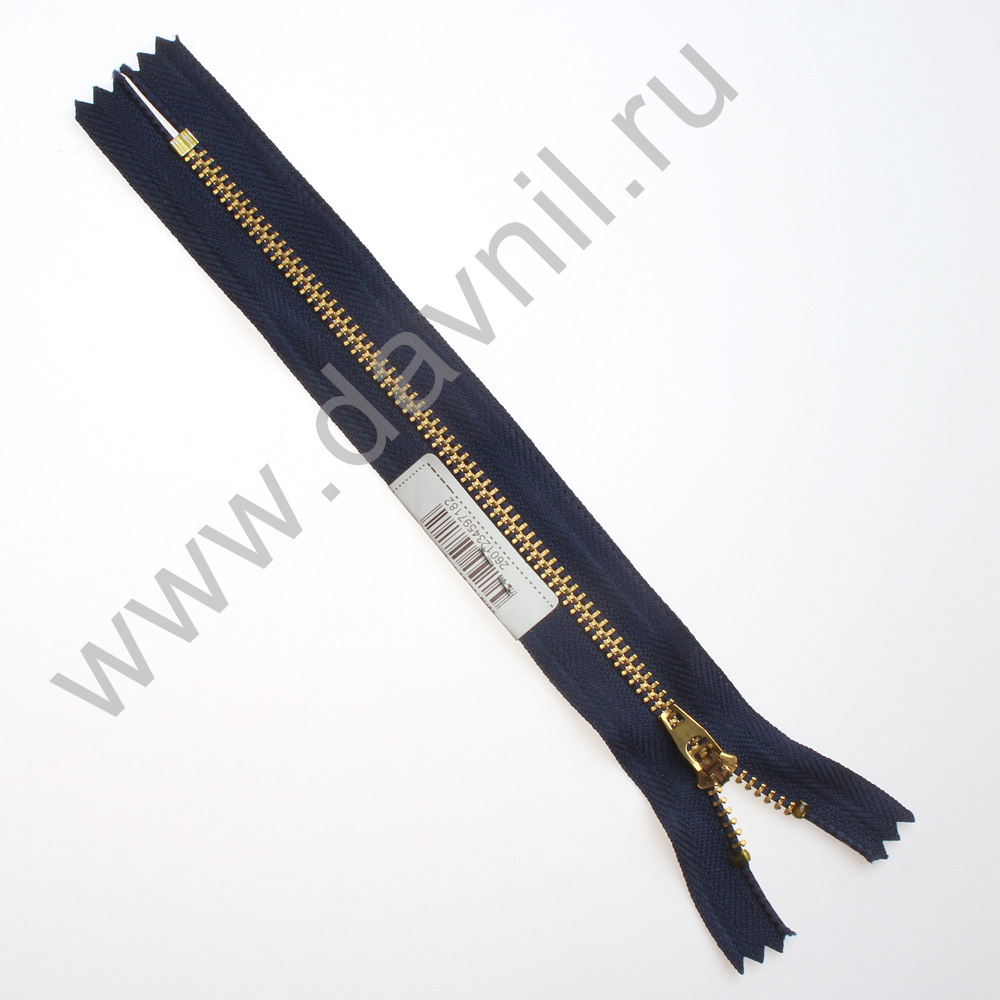 Молния металлическая под золото 20 см синяя 10 шт.