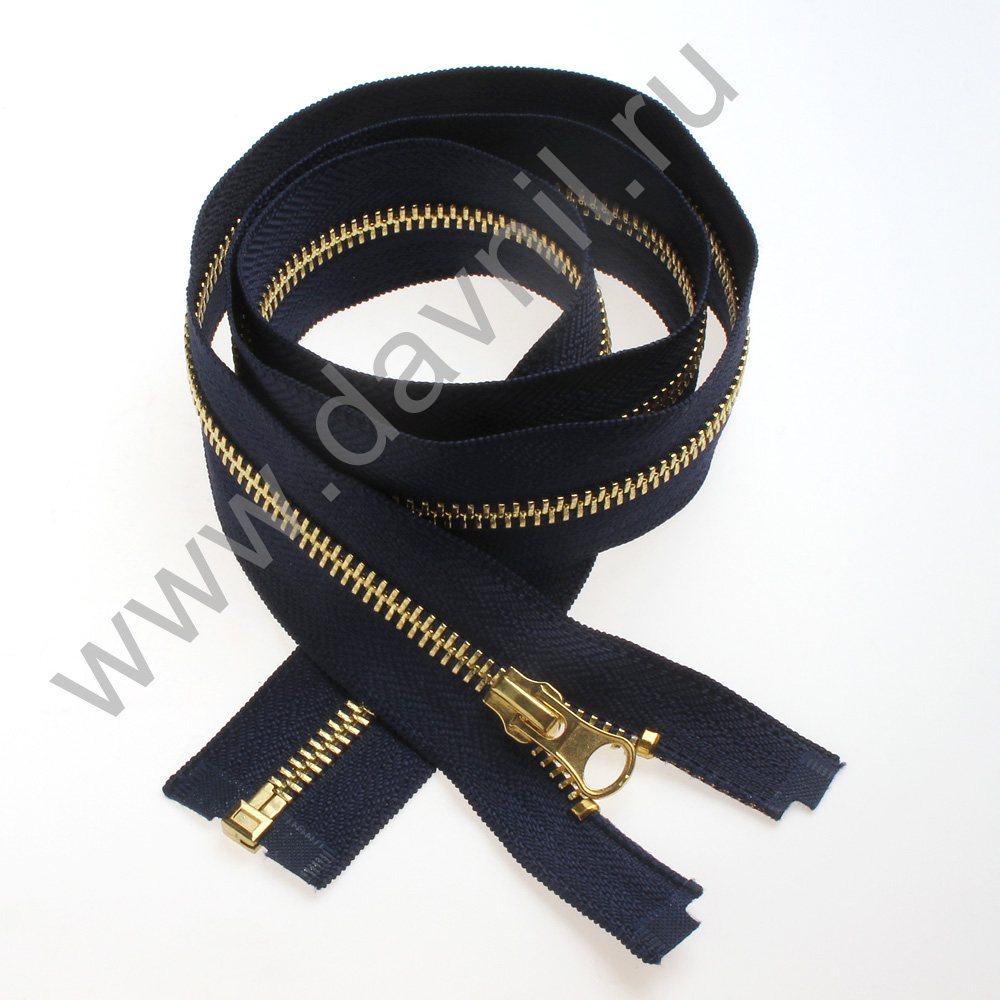 Молния металлическая с золотом 90 см синяя 570 10 шт.