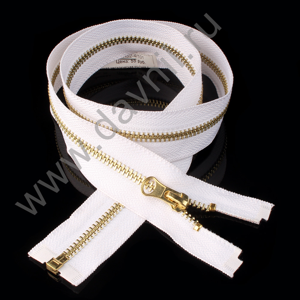 Молния металлическая с золотом 70 см белая 101 10 шт.