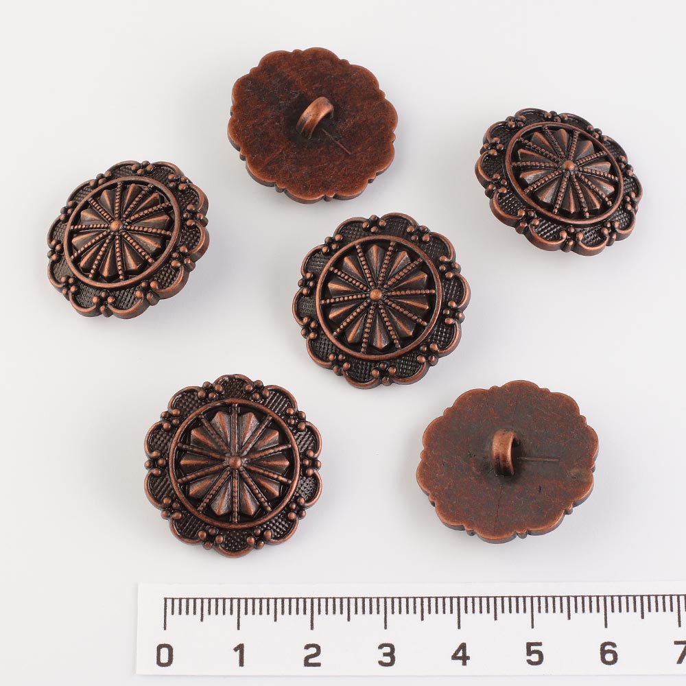 Пуговица 25 мм цветок на ножке металл медь 10 шт