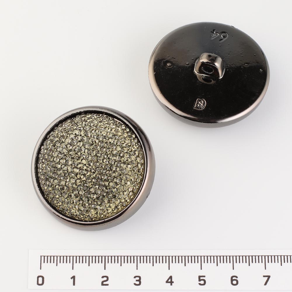Пуговица 35 мм на ножке серая страза в тёмном серебре 2 шт