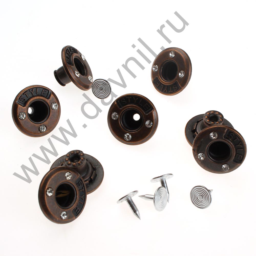 Пуговицы джинсовые 20 мм со стразами медь 20 шт