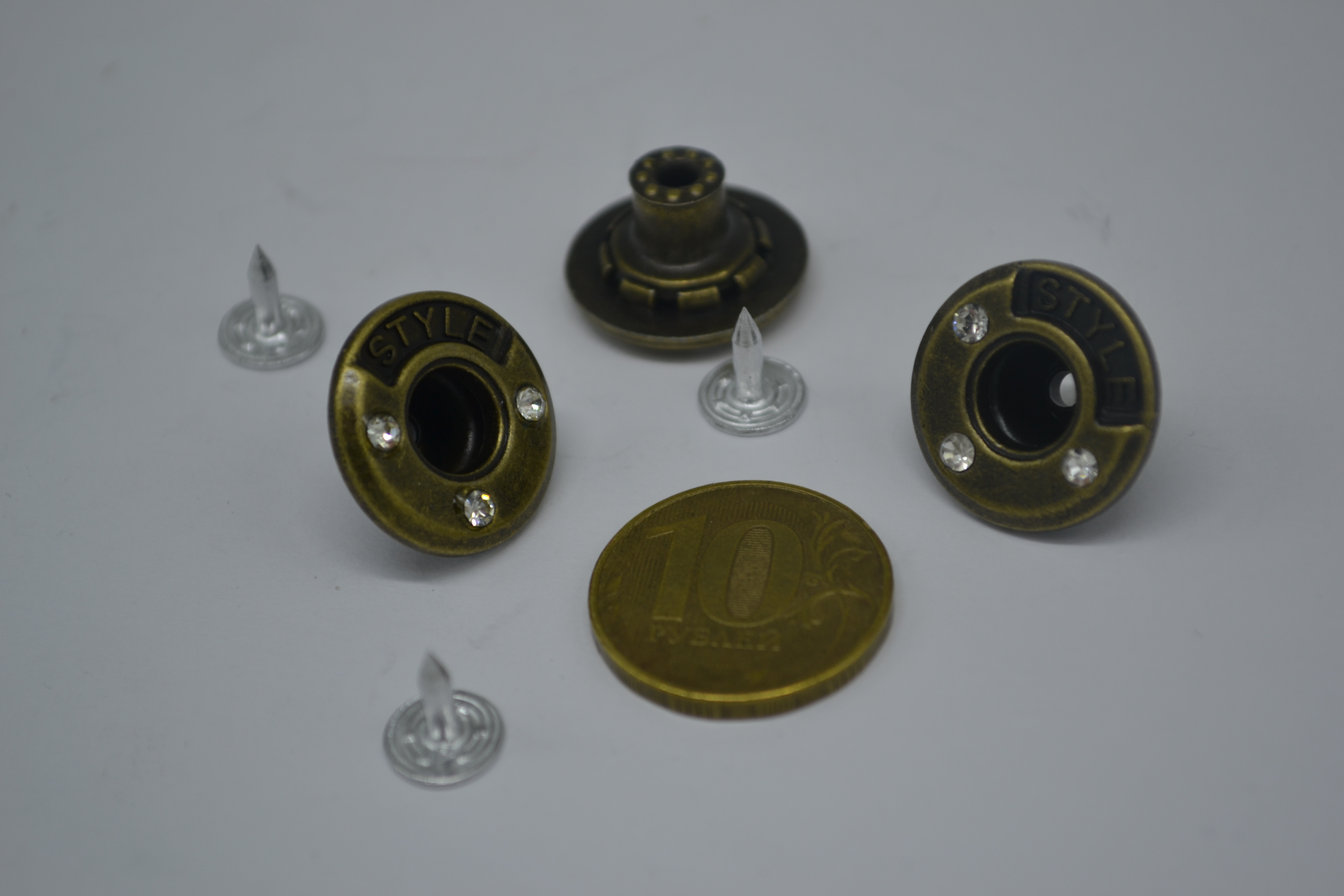 Пуговицы джинсовые 20 мм со стразами тёмное золото 20 шт