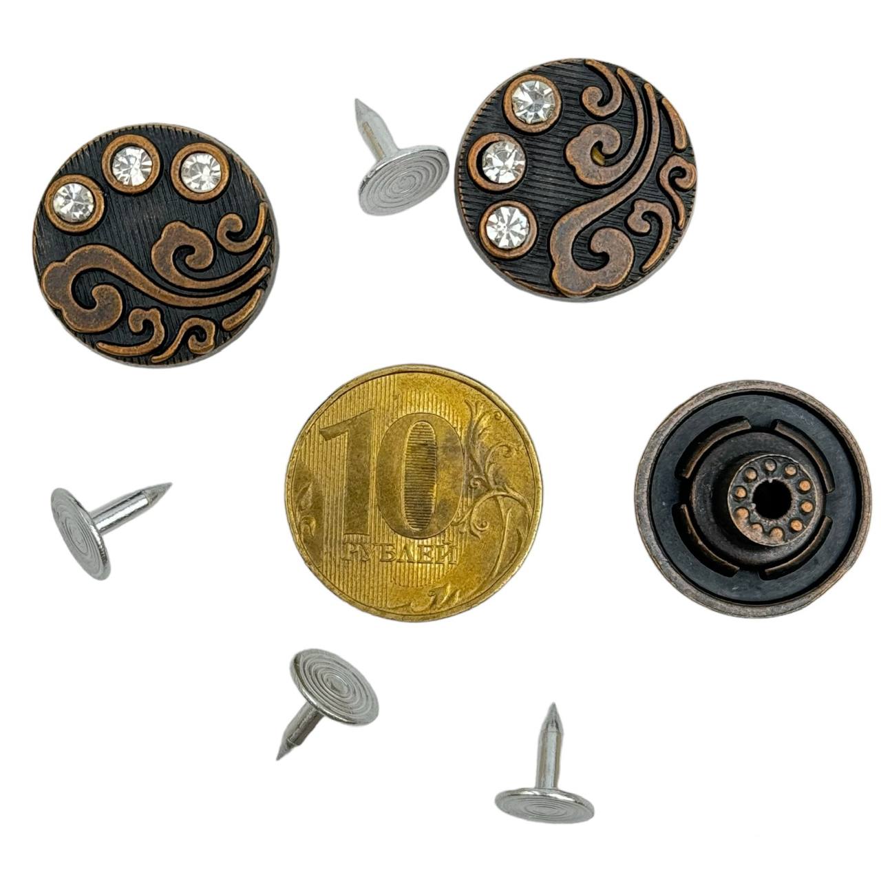 Пуговицы джинсовые 20 мм со стразами медь 20 шт