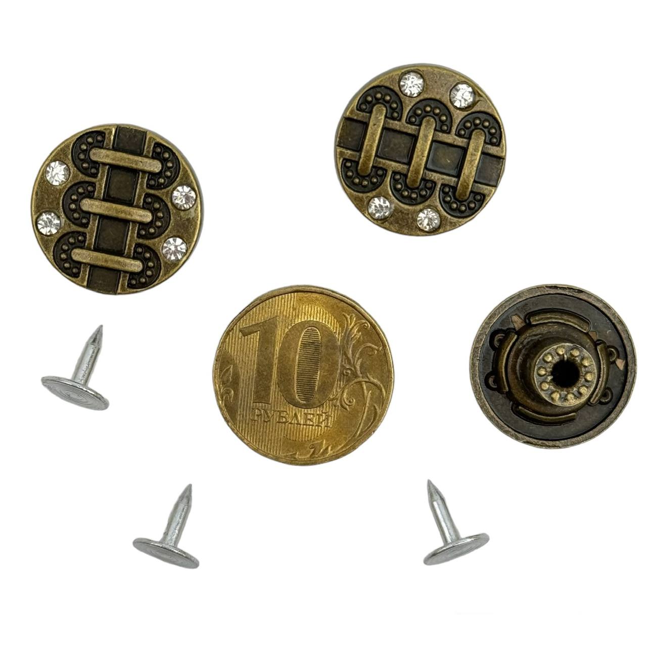 Пуговицы джинсовые 20 мм со стразами медь 20 шт