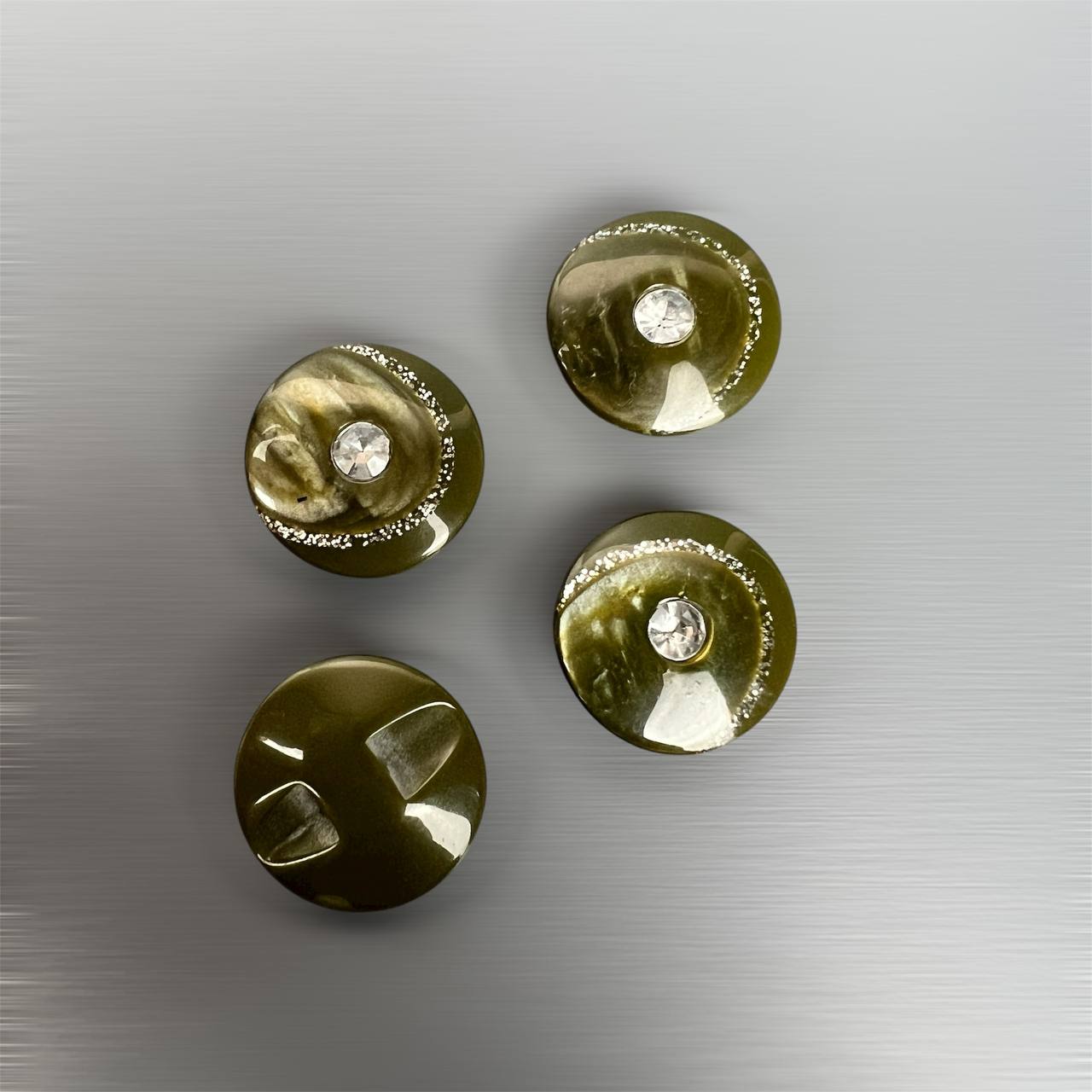 Пуговица 15 мм на внутренней ножке хаки со стразинкой 20 шт