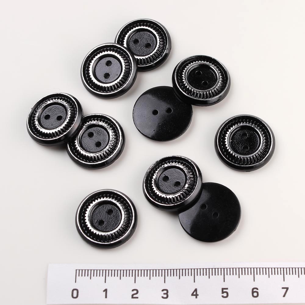 Пуговица 16 мм чёрная с серебряным кольцом 20 шт