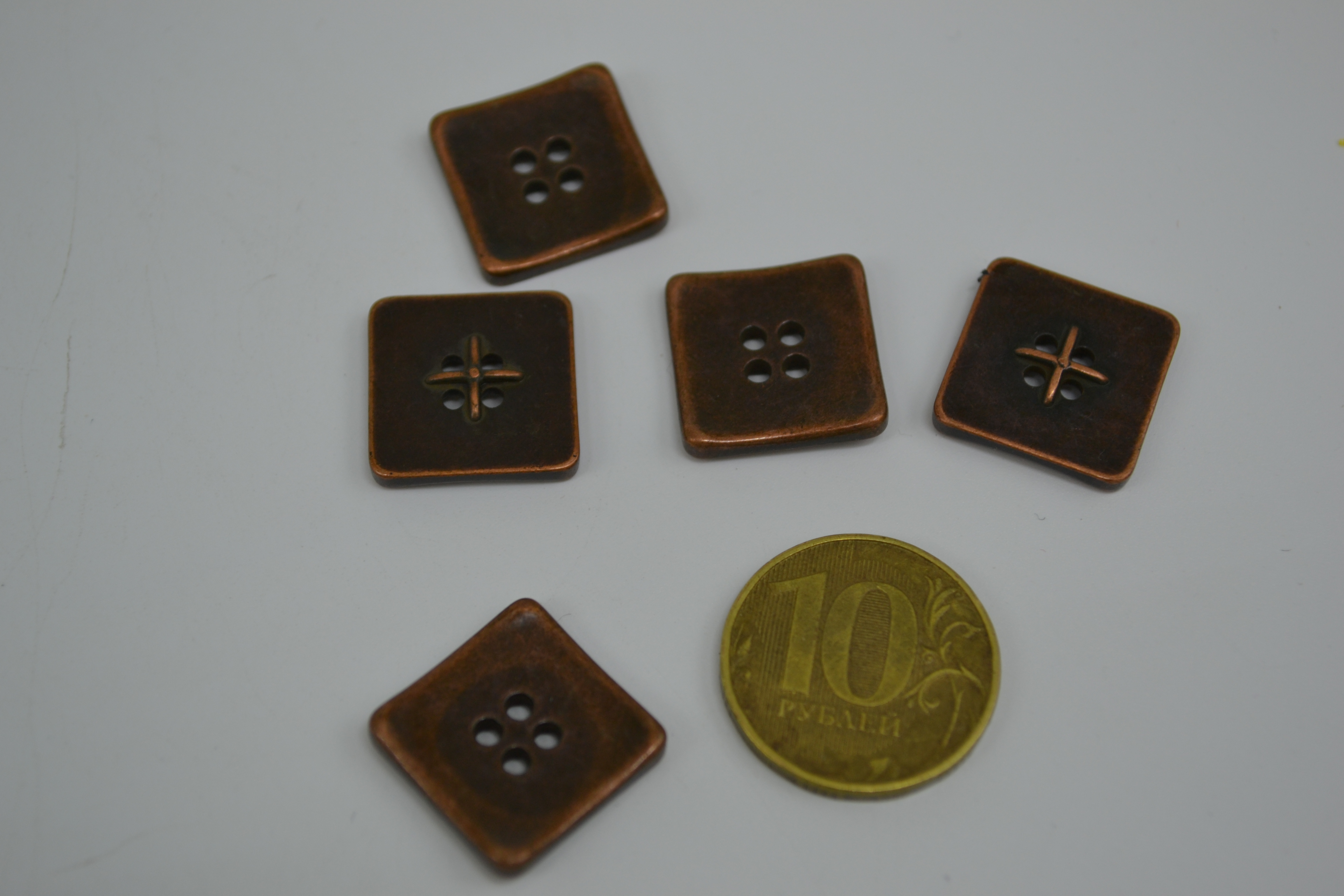 Пуговица 17 мм квадрат под металл медь 20 шт