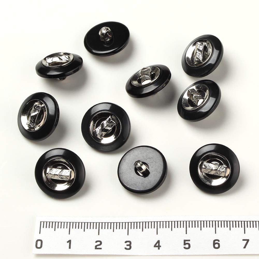Пуговица 17 мм на ножке чёрная с серебряной серединкой 10 шт