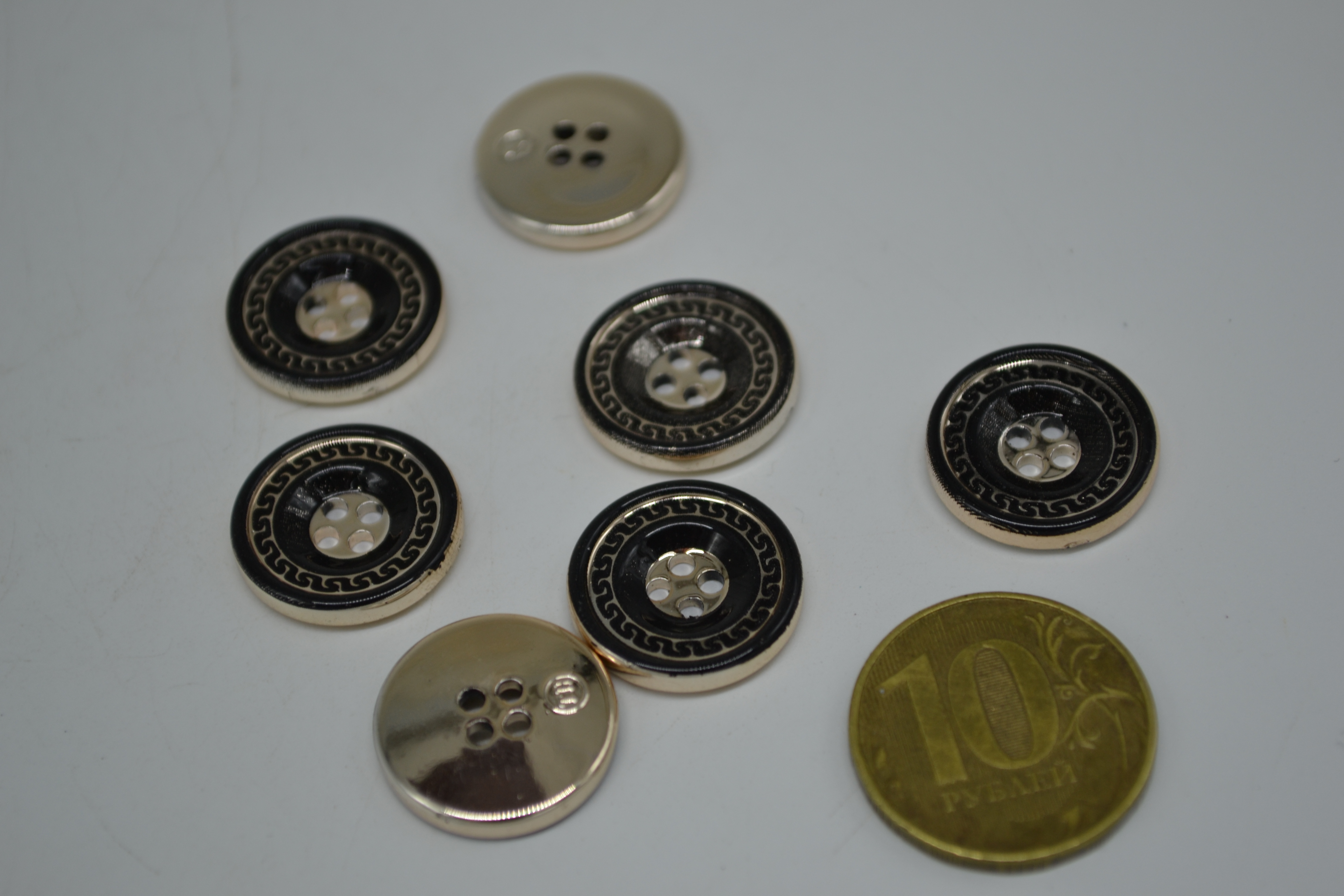 Пуговица 17 мм чёрная с рисунком на золоте 20 шт