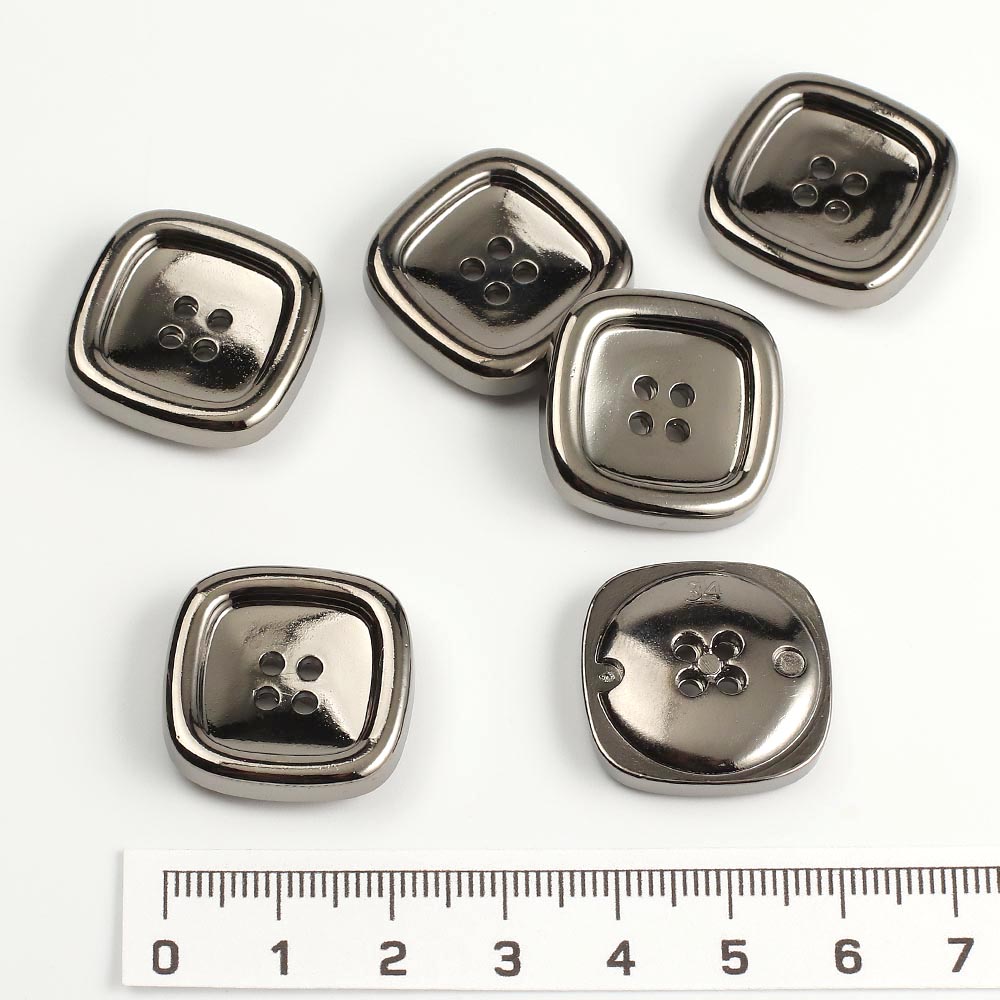 Пуговица 18 мм квадрат под металл тёмное серебро 20 шт