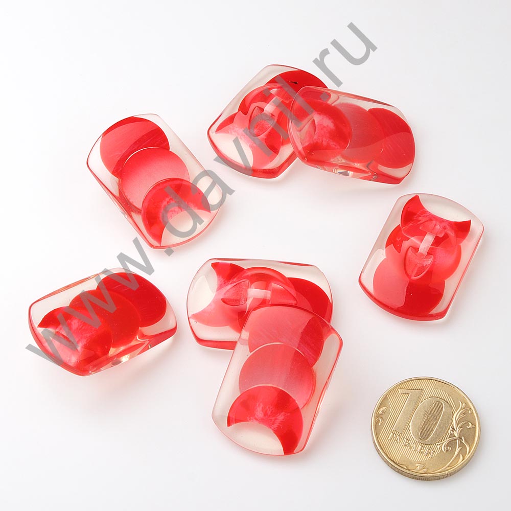 Пуговица 20*30 мм на внутренней ножке прямоугольные закругленные красные 10 шт