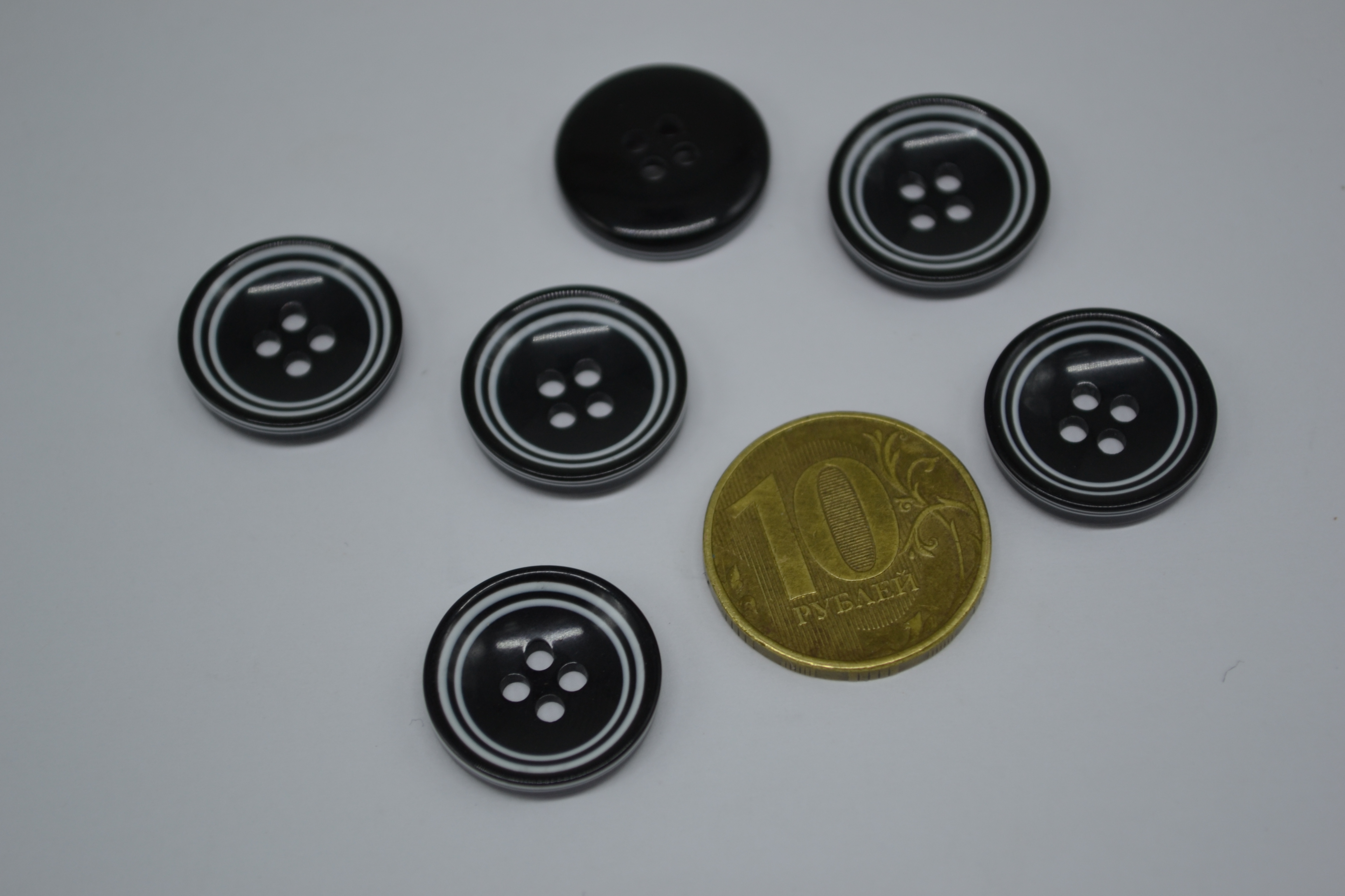 Пуговица 20 мм чёрная с белым ободком 10 шт