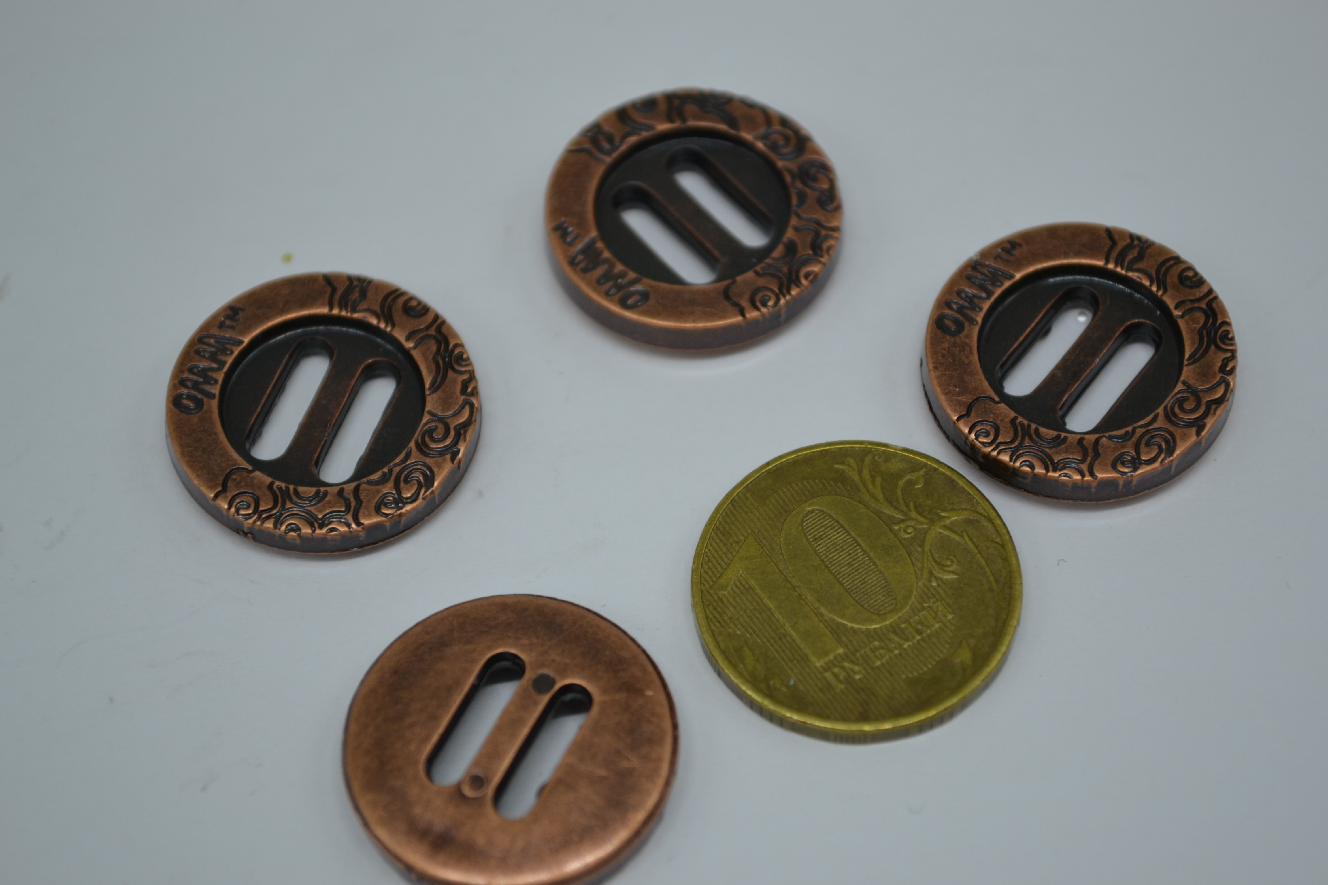 Пуговица 20 мм под металл медь с прямоугольным отверстием 10 шт 541