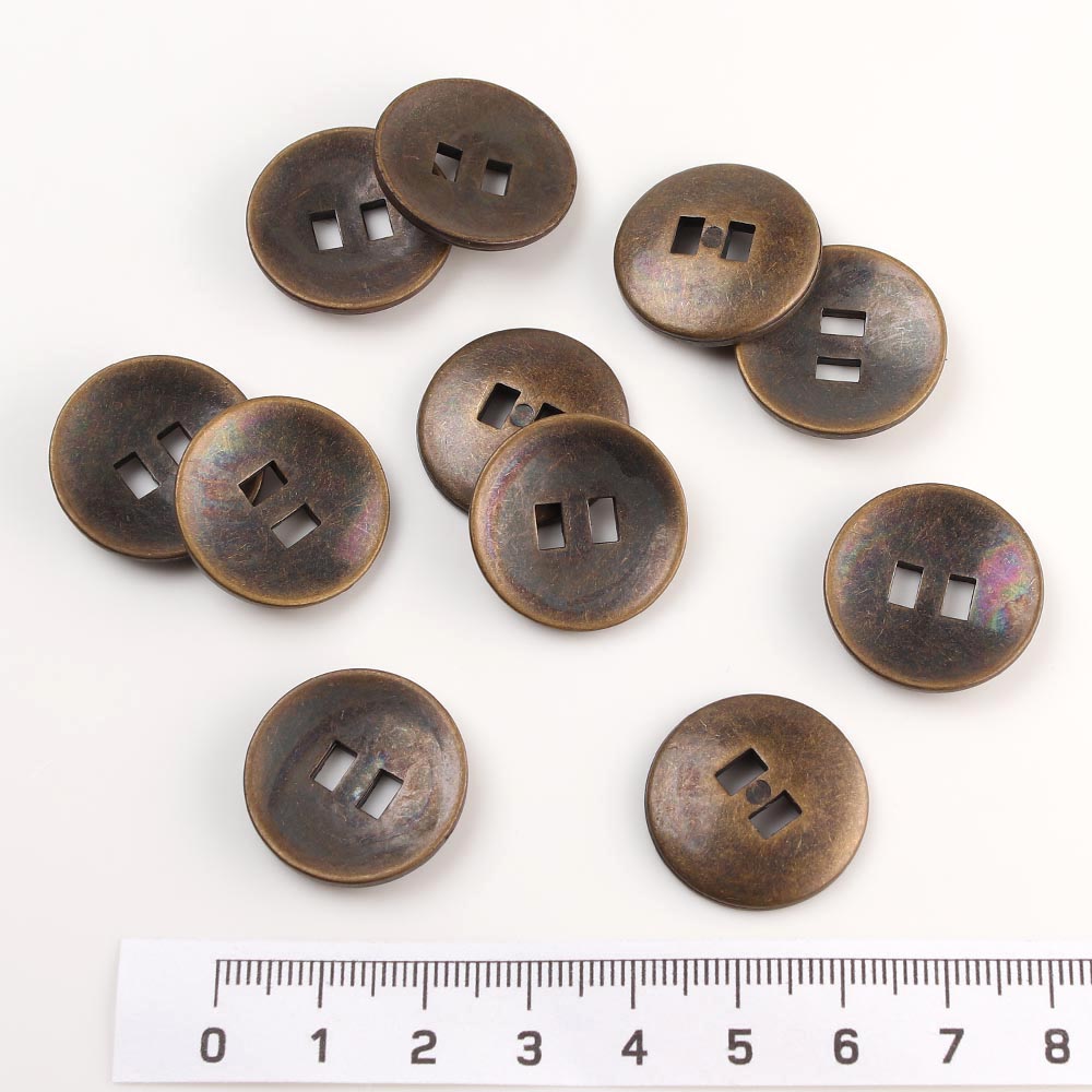 Пуговица 20 мм под металл медь с прямоугольным отверстием 20 шт