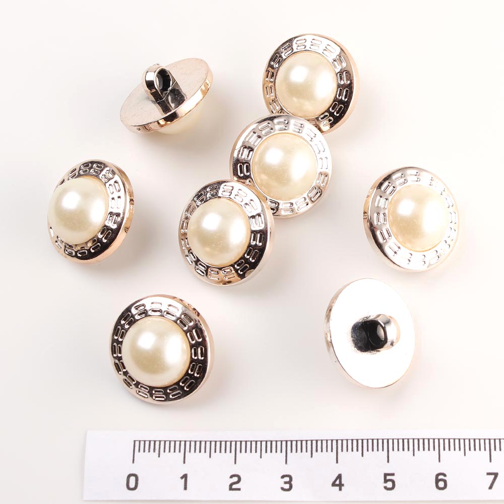 Пуговица 20 мм на ножке жемчуг в золоте 10 шт