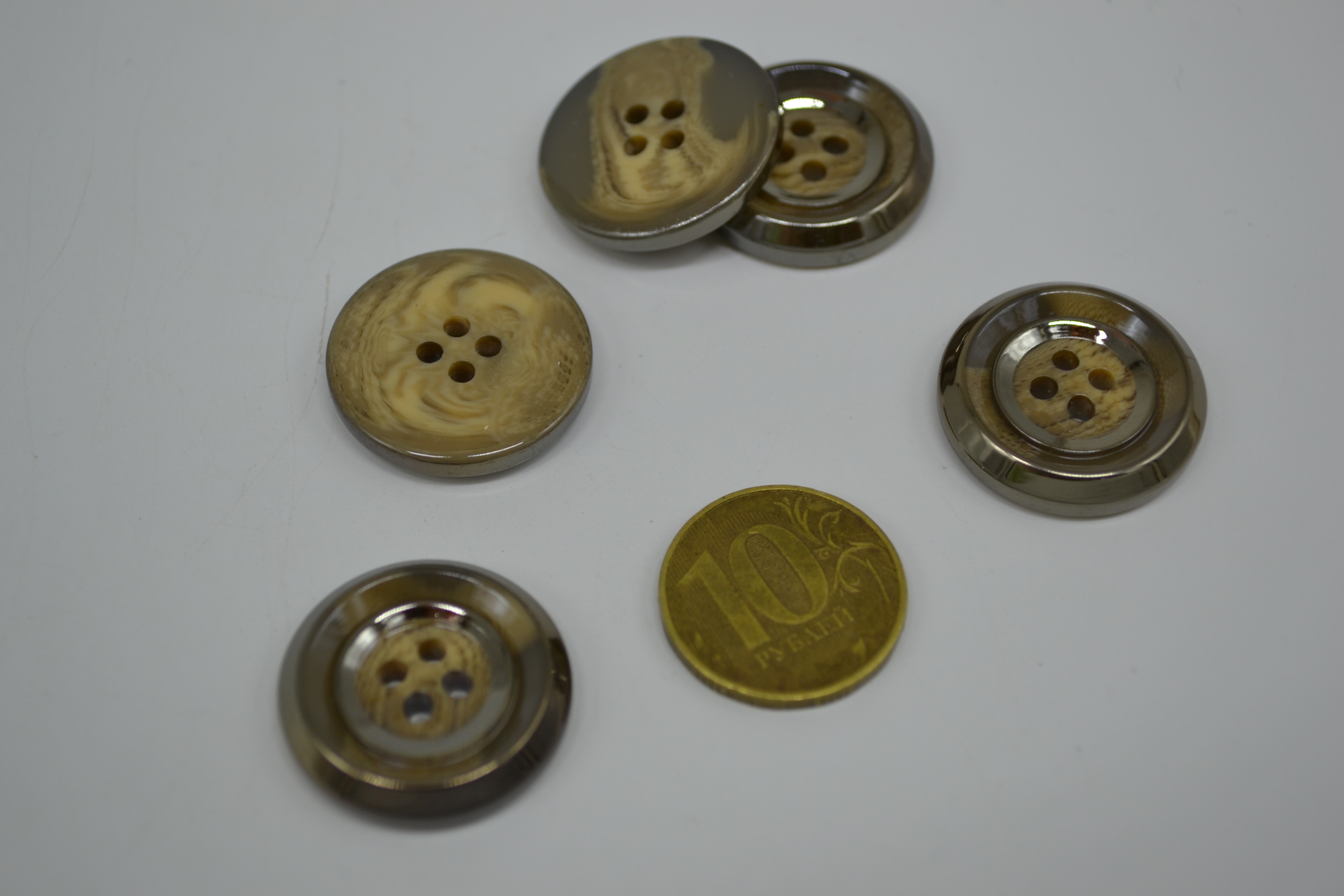 Пуговица 20 мм прозрачно коричневая с серебрянными кольцами 10 шт