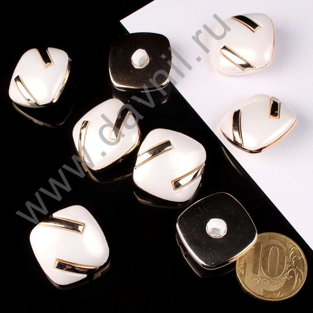 Пуговица 22 мм на ножке жемчуг квадрат в золотой оправе 10 шт