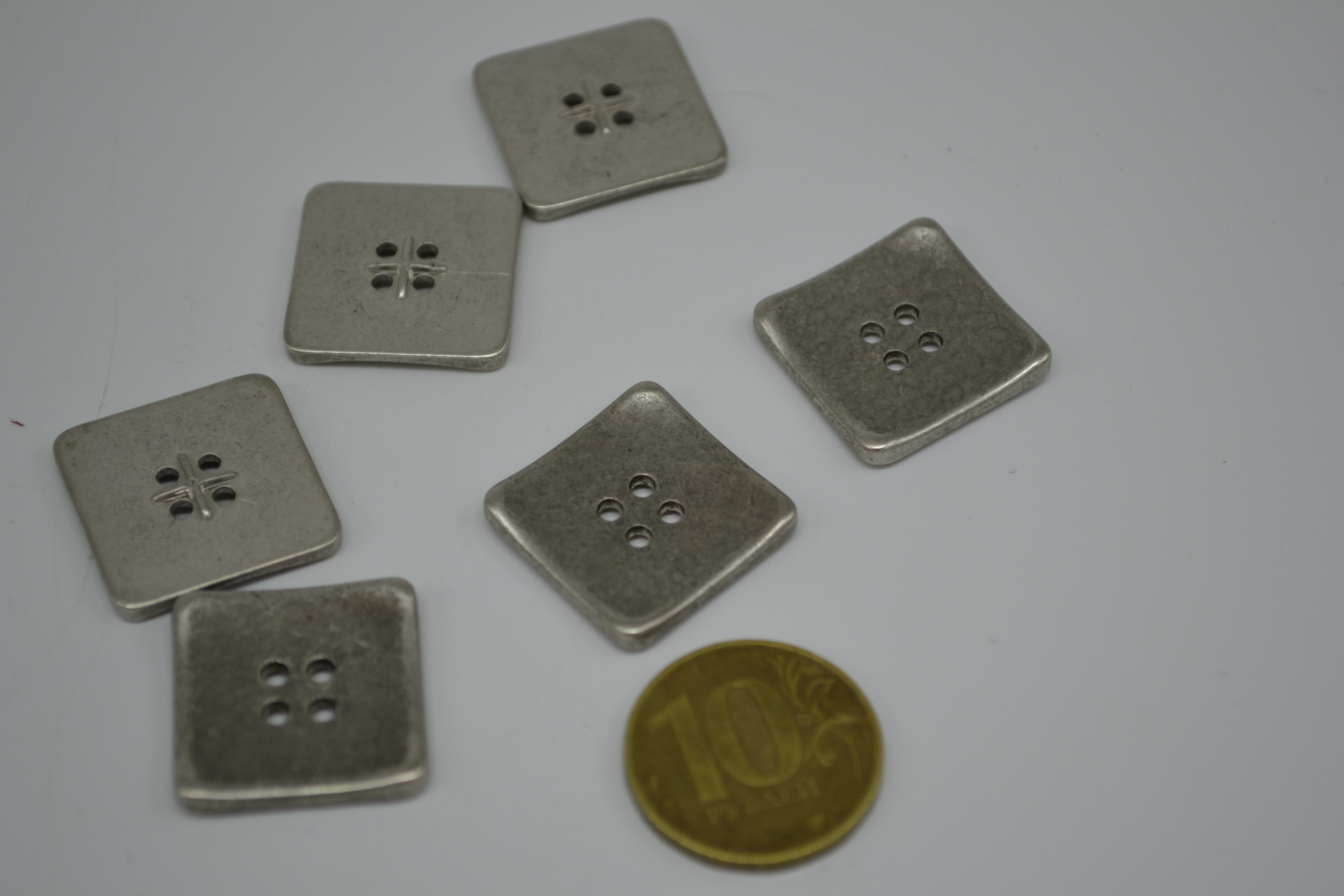 Пуговица 22 мм квадрат под металл серебро 10 шт