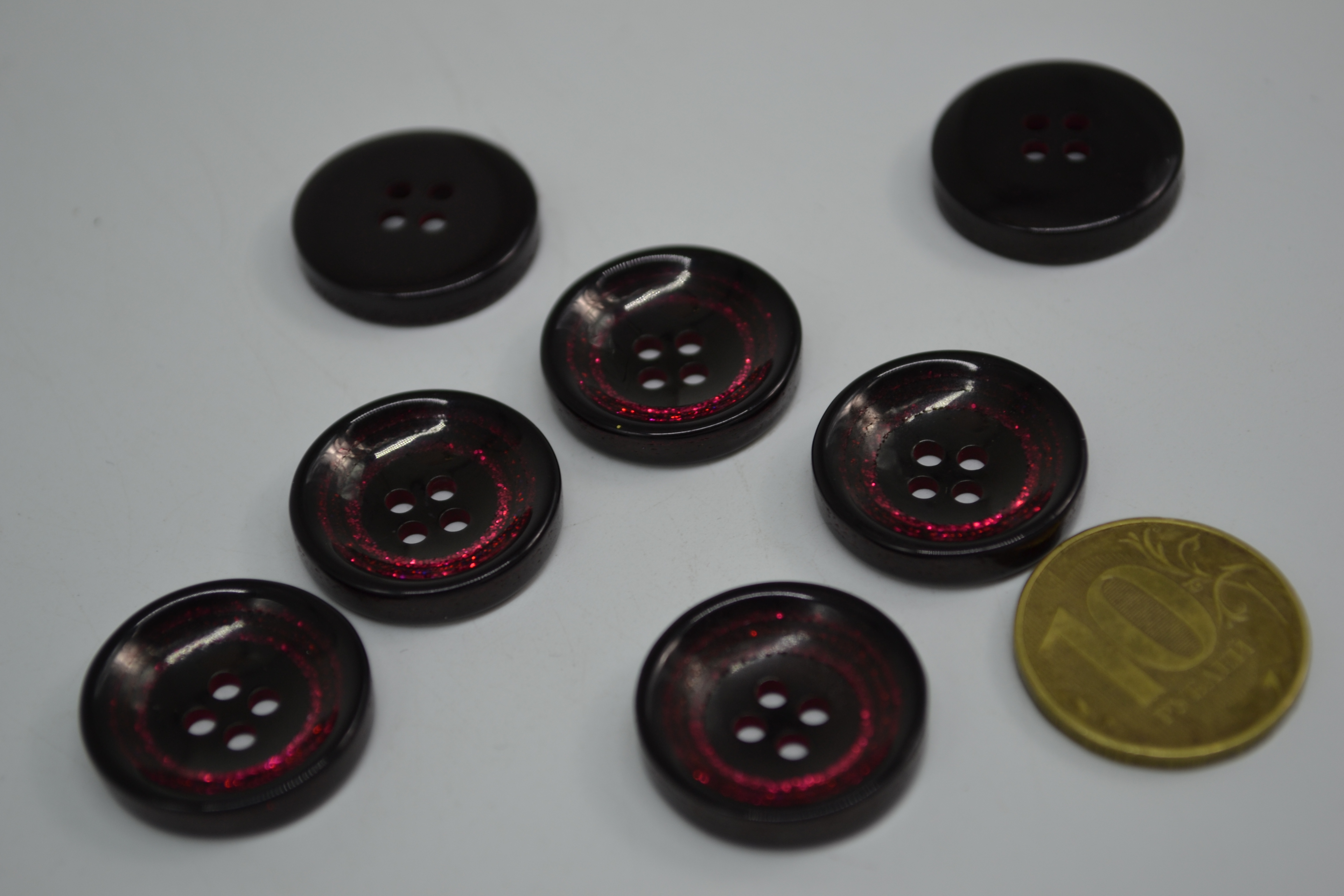 Пуговица 22 мм чёрная с красным глиттером 20 шт