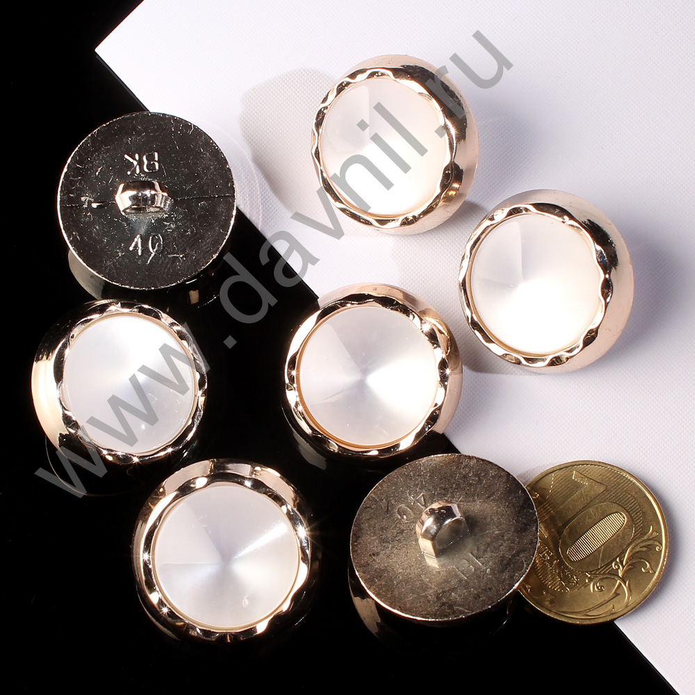 Пуговица 25 мм на ножке белый перламутр в золотой оправе 10 шт