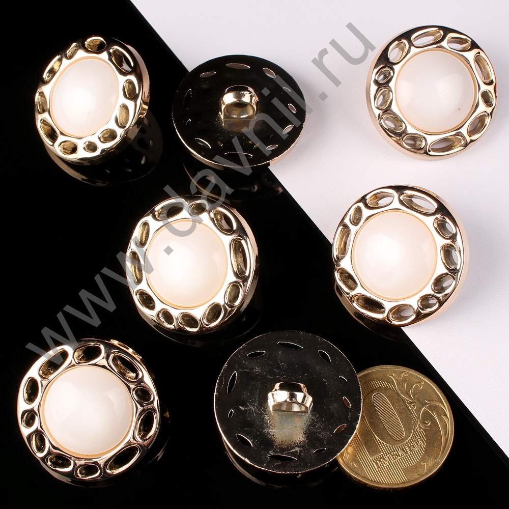 Пуговица 25 мм на ножке белый жемчуг в золотой оправе 10 шт