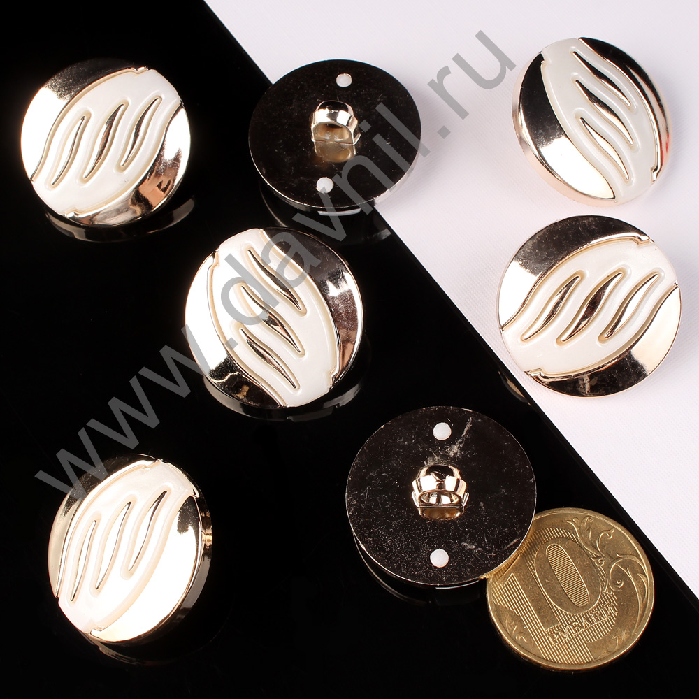 Пуговица 25 мм белая в золотой оправе 10 шт