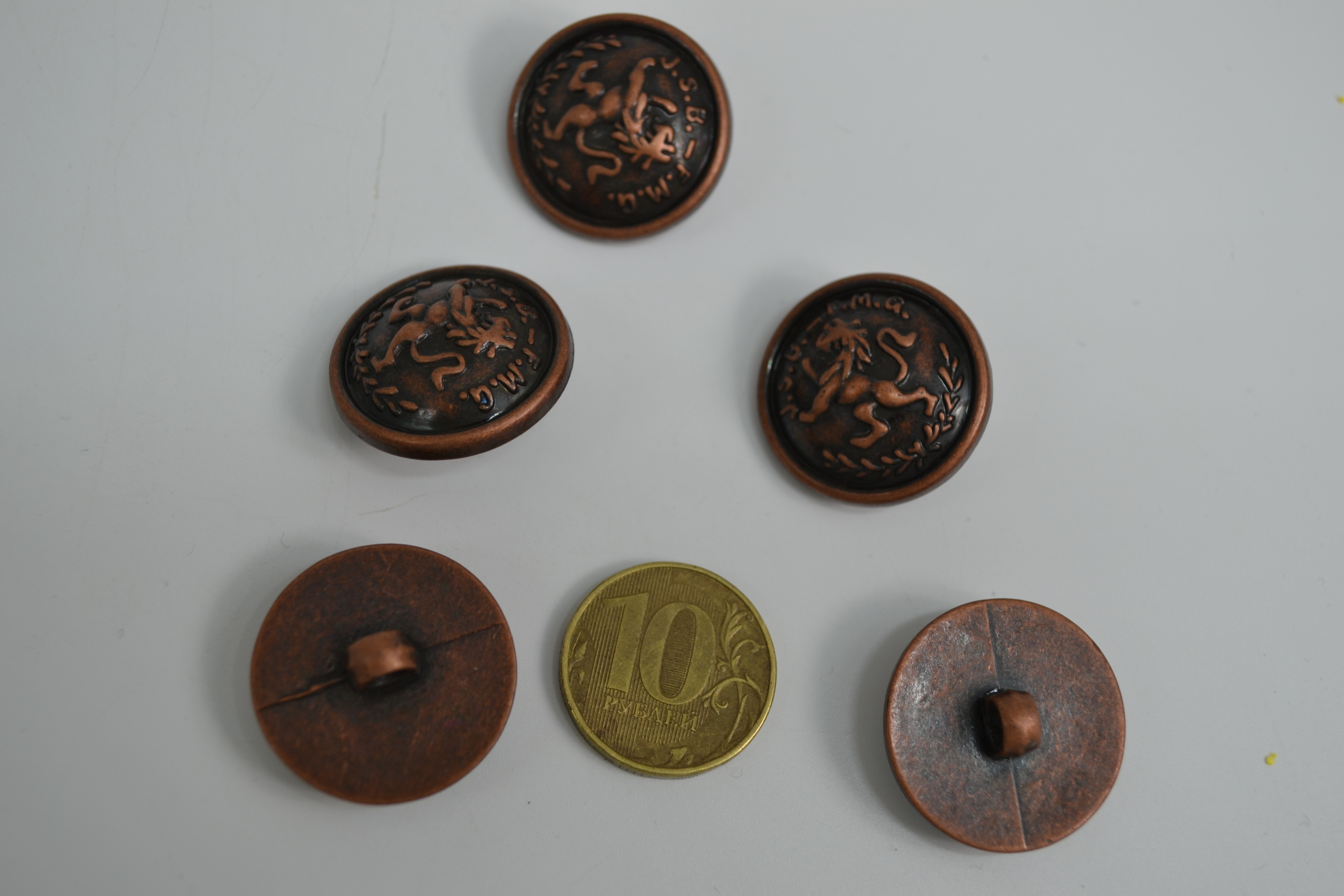 Пуговица 25 мм на ножке под бронзу с рисунком льва 10 шт