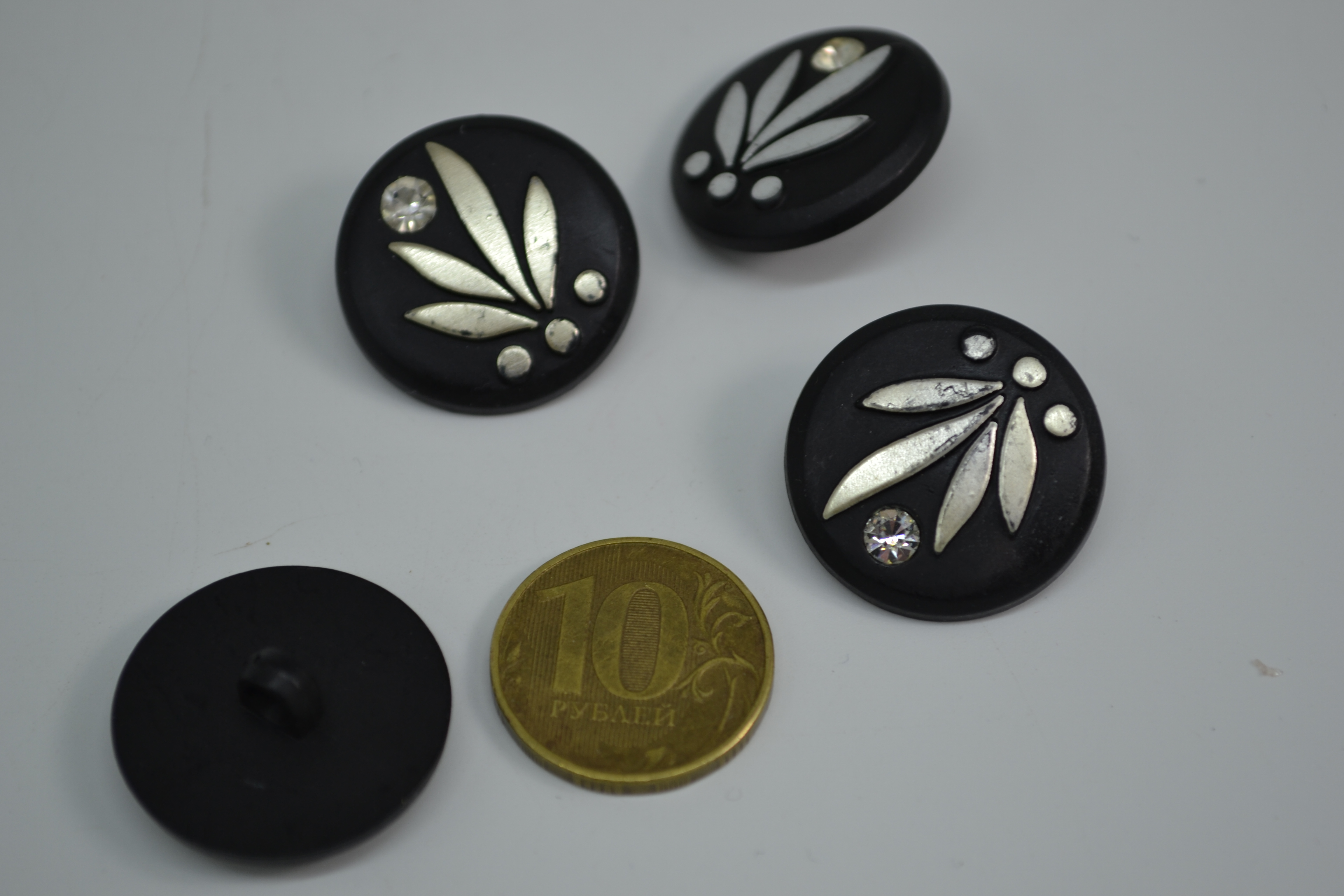 Пуговица 25 мм на ножке чёрная с листочками 10 шт (уценка)